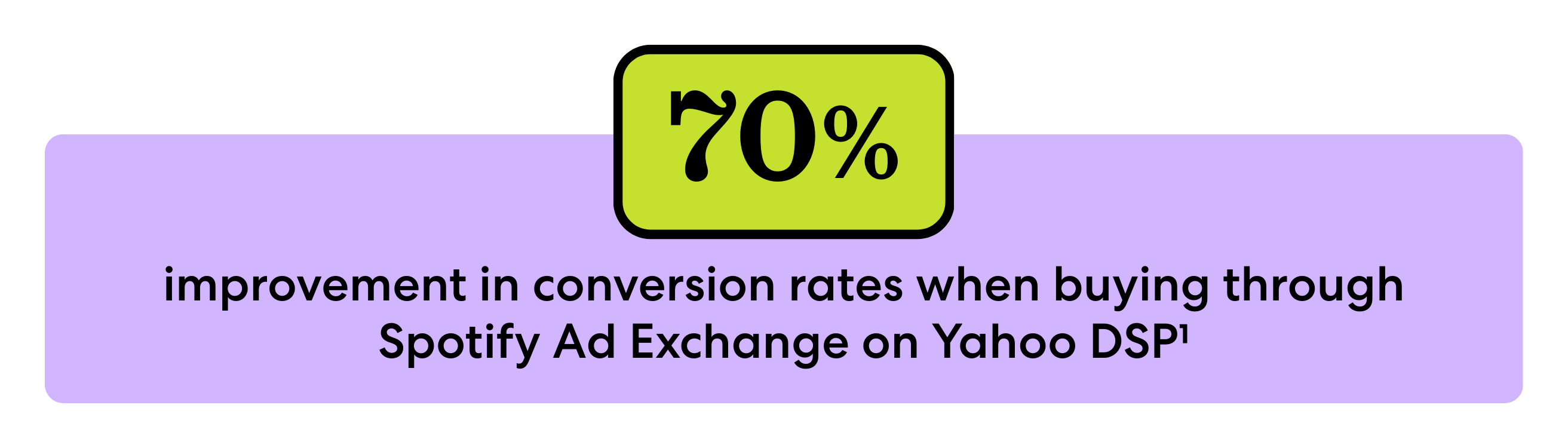 That’s why we launched the Spotify Ad Exchange: to give advertisers more ways to buy. This drives better performance by making Spotify’s inventory fully biddable within powerful programmatic, omnichannel platforms like Yahoo DSP. In fact, advertisers on Yahoo DSP that currently have Spotify Ad Exchange deals added to their media mix see nearly 70% improvement in conversion rate, and cost per action declined almost 90%.¹